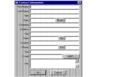 - Enter any relevant personal information for the contact. You must enter the contact's email address for the contact to receive a Meeting Maker email invitation. Contacts without email addresses can be added to proposals as a visual reference for other invitees, but such Contacts do not receive any form of invitation.