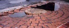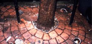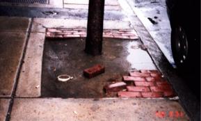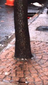 Two examples of the bricks that encircle the trunks of the trees. The bricks do not allow adequate amounts of water to reach the roots of the tree. In this case, the roots of the tree have outgrown the small plot of land it was given and have begun to create heaving in the sidewalk and bricks.