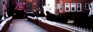 St. Leonard's Peace Garden, further down Hanover St. provides a haven of sorts for plant-life in an area otherwise lacking in green space. The trees lining the fence just inside the garden have much denser branches than those on the sidewalk outside of the street, probably due to the fact that they can benefit from being planted in open ground instead of the small plots of land delineated to the other trees. Inside the gates are two raised plots of land containing many thriving evergreen bushes, grass, and statues. There is a hose and spigot, indicating that this garden must be watered to keep the grass green, but with about three feet of soil in the raised section, there would probably be sufficient space for water storage and drainage. The relative health of these trees and bushes compared to those on the street is similar to that described by Spirn in the case of the Kahn plaza in Philadelphia. (Spirn, 194) Other churches, schools, and libraries in the area could look to this garden as a role model for future gardens they may (and should!) plan.The raised level garden with about 3 feet of soil, much more than on the street, which would account for why these trees and bushes look a lot healthier.