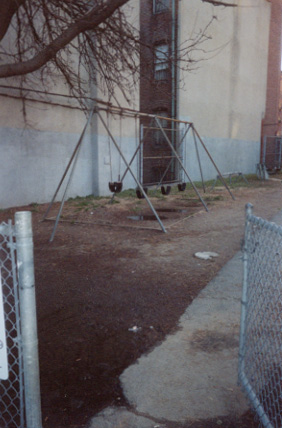 Another park, on Richmond Street, shows many affects of natural processes. Most of the small park is dirt and mulch. However, there are also several patches of grass and thick moss. There is one large tree that is growing in a corner by the fence of the park. Nearby, there is a dead tree stump. Apparently, one of the trees in the park survived while the other did not. Most likely, the tree that died did not get enough water since the area around its stump is dry while the area around the live tree is muddy and full of water.