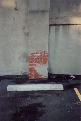 Large concrete columns support many of the buildings in my area. The majority of these columns are on Fulton Street and Commercial Street. Most of these columns show several signs of decay and natural processes. The cement of the columns is chipped and rusted in many areas. Some of the columns seem to have had more than half of their cement chipped away. The chipping most likely is the result of wind and water erosion. Acid rain and rust could have also contributed to the weakening of the columns. The rust seems to come from long metal rods that are imbedded in the cement. The areas of cement around these rods are stained red with rust. A few of the rods are larger than the rest and have star-shaped designs on their ends. These metal stars are all completely rusted, as well as the cement around them. Interestingly, some of the columns seem to be in perfect condition. These faultless columns are often right next to the eroded ones. There does not seem to be any reason why some columns are highly eroded and others are not. The spared columns are exposed to the environment and natural processes as much as the others. The most likely explanation is that the faultless columns have recently been repaired.
