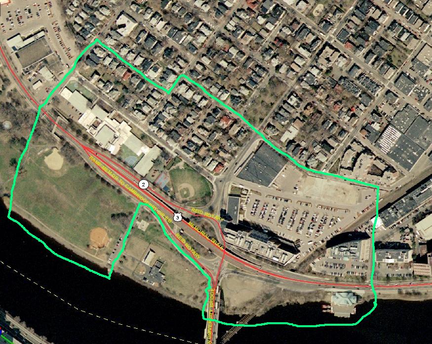 I think that this will be a good site to study because it is an intersection of many types of area zones and contains several prominent features. There is an overpass where Brookline Street meats Memorial Drive, train tracks, two bridges, and a school. There are also modern Industrial buildings right across the street from a residential area and a small commercial area. With all these different features I think that there will be plenty of information to research.