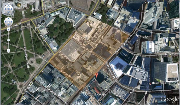 Even looking further into the historic buildings and their placement, it’s interesting to see how old City Hall and King’s Chapel reside next to each other, with Park Street Church not two blocks away. The classic comparison between religious and political institutions would be a potential path to pursue as well, to discover any reasons behind that particular organization (if any).