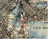 There is still evidence of Andrew Square’s shoreline past: a faint breeze, a small group of seabirds, and old homes. When you arrive on site the temperature is noticeably colder than it is Downtown. During my most recent visit, the winds had picked up to 10 mph and the air was cold and wet. The calls of two seagulls swooping above the border of the natural and filled land were eerily symbolic (Figure 3). The land beneath Dexter Street is present on maps dating back to the 1700s. Much of the surrounding land was created at the turn of the 19th century.