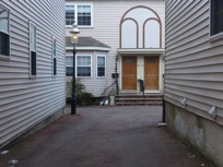 Natural processes provide clues of how the Middle Street neighborhood developed. Most of the houses in the neighborhood were constructed between 1895 and 1905 (Zillow). All are brick, as noted in Section II, to account for their proximity to water. The lots are narrow and have limited outdoor space. The need for parking is a modern problem. When the neighborhood was developed at the turn of the 19th century, cars were not invented. During the mid-century, families almost exclusively had one car that could be accommodated by street parking. Today, the median price to buy a home in the Middle Street neighborhood is $450,000 so I would hypothesize that many of these families have two cars for two working professionals (Zillow). A desire for green space must compete with this strong need for parking. The two residences pictured in Figures 7 and 8 demonstrate two ways property owners address the tradeoff, and how their decision affects the surrounding environment.