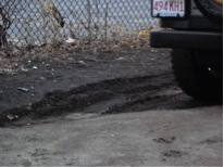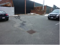 The combination of natural land slope and frequent traffic affect how water drains on the street. On Dorchester Street, a majority of the water collects on the right side of the street. Most cars park on this side; it is the traffic coming into Andrew Square from the Financial District. There are indents in the areas closest to the curb from the repeated stress of the weight of cars. The road declines from the left side to the right side, increasing the amount of water that collects there. The puddles and holes interrupt the flow of water to the large drains located at street corners and allow trash and other inorganic materials to collect in them. Surface water has a similarly negative affect on this asphalt as it did on the improperly set up parking lot.