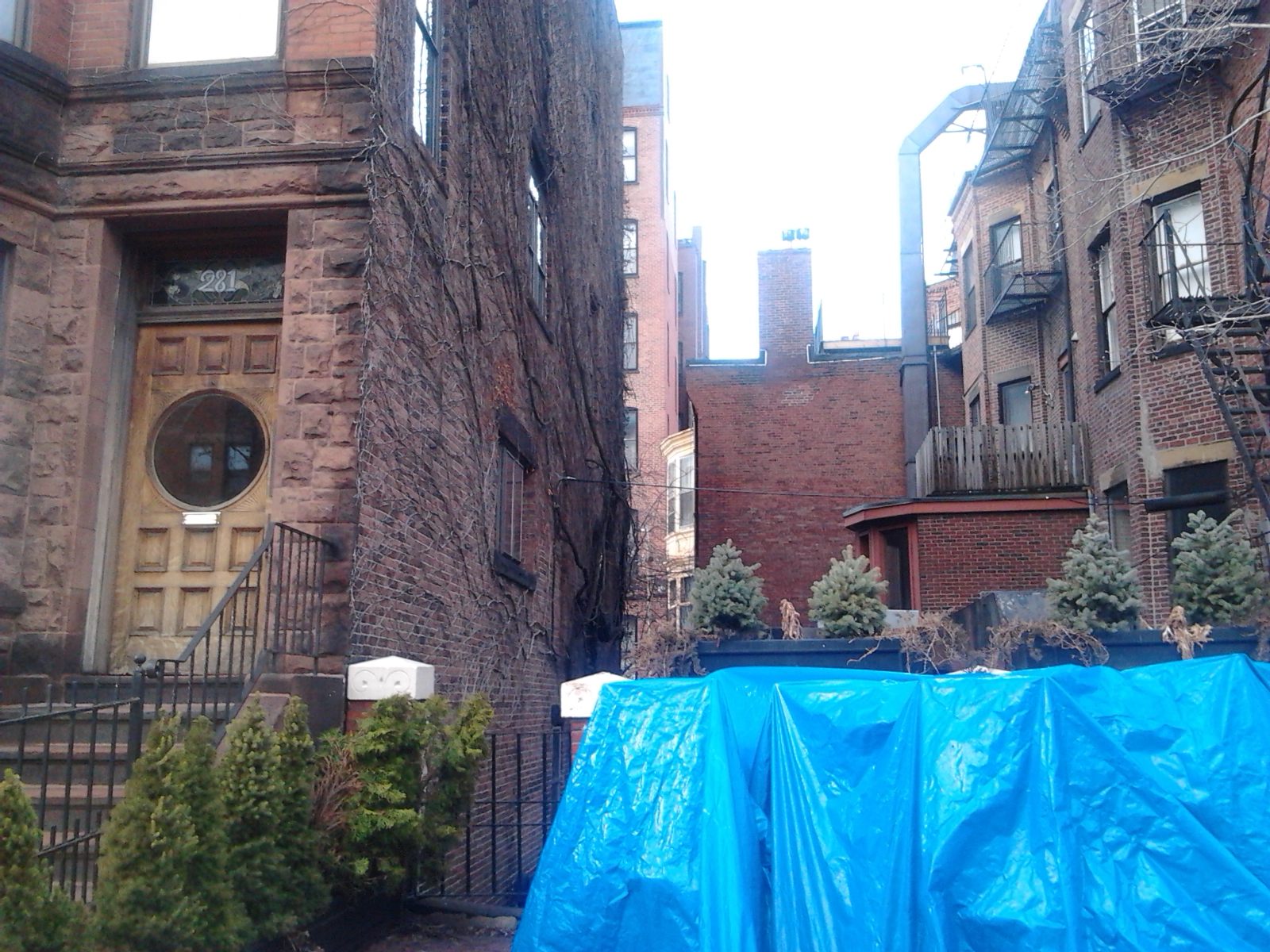 Another example of the influence of sunlight is the natural process occuring in Figure 10. On the south side of Commonwealth Avenue is a plant growing against a house shown in in Figure 10. This plant is located at the very base of the house-the worse location to get sunlight. As a result, the plant started to grow upwards towards sunlight, and used the house as a support.