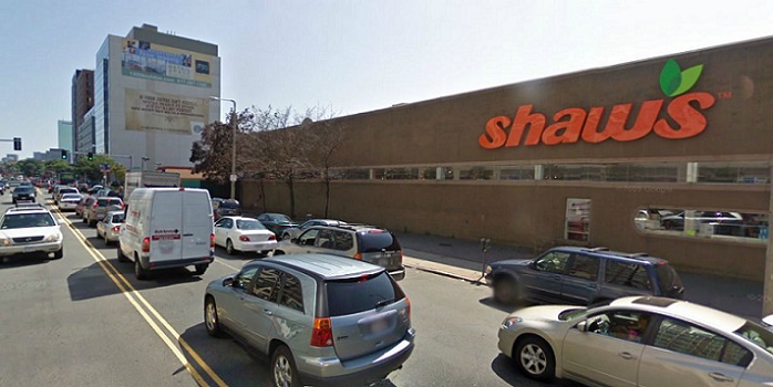 A somewhat different instance of the impacts of transportation can be seen on Boylston Street as a trend in the type of buildings that now exist. Throughout most of the rest of my site, the change in the retail use of buildings has been limited to changes within the building rather than with the building’s exterior size and shape. A major exception to this can be seen on Boylston Street, where small buildings were completely eliminated in favor of building much larger buildings for retail and business purposes. In one case, a small battery store and service center was replaced by a larger building, which is now a Shaw’s. The change of this building occurred sometime between 1937 and 1974. On the north-east corner of the site, a set of small convenience type stores was removed to build a high-rise which is now filled with offices as well as restaurants and fast food companies. This construction project took place sometime after 1992, making it a fairly recent example of this trend. Both of these buildings in the present day can be observed in figure 5, a view looking east down Boylston street.