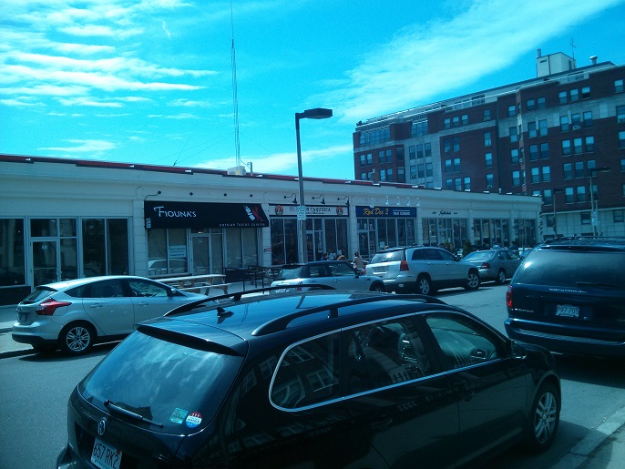A final example of traces of past business as well as trends pointing towards the future can be observed on Peterborough Street. In this case, the building that was in place was a set of small community stores as shown on historical maps such as the zoomed 1937 Sanborn map in figure 8. The stores were closed down, and the building was completely renovated around 2009. The strip can be seen in its state of construction in figure 6 taken from Google Streetview, while its present day state can be seen in figure 7. Interestingly, the building was refurbished to remain a set of small subdivided establishments during this 2009 construction. They now entirely consist of places to get food, be it restaurants or fast food. As discussed in the previous paper, Jackson mentions that as automobiles were invented, the popularity of going out to eat greatly increased since it was easy to get around (Jackson, 263). This demand for places to get food evidently still continues to this day, given how recent this change was. The building still being a set of small companies leaves a trace of the past utilization of the building, while also leaving the scene a trend of how businesses have changed on the site of the West Fens.