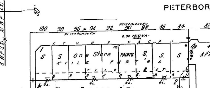 Figure 8 - A 1937 Sanborn map of Peterborough Street showing the subdivided