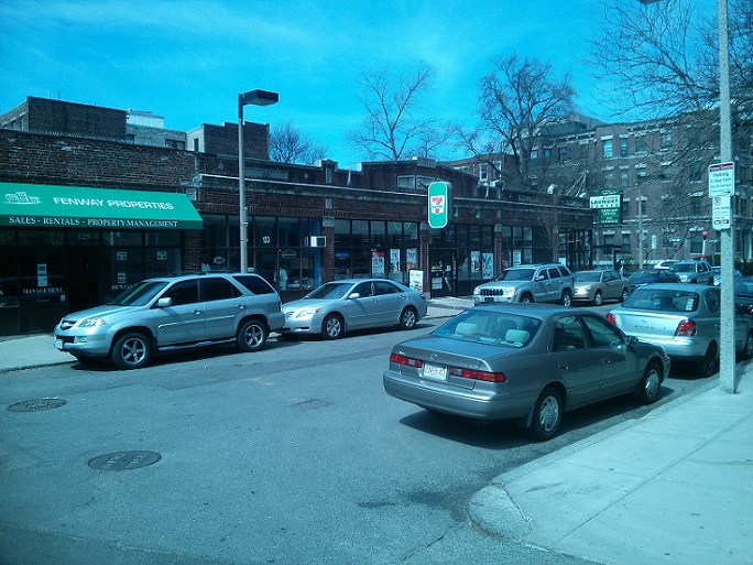 One location where a change is likely to happen in the future is on Jersey Street at the corner with Queensberry Street. This is one of few places on the site where stores reminiscent of original community stores can still be observed. A photograph of this location can be seen in figure 9, where a seven eleven and laundry store are present, among other small businesses. Based on the trends observed in the rest of the West Fens sites, it is very likely that these businesses have a short lifetime remaining. One might argue that since these companies have existed so long that they must be stable and secure; however, no company is secure from the evolution of an entire community and culture. The changes discussed have been occurring up through even the recent years, so there is no reason the changes would cease for these companies.