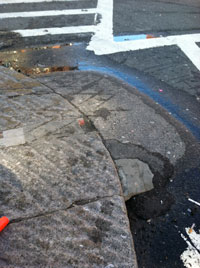 Figure 5. A puddle of water forms where the sidewalk meets the crosswalk. Photograph by author.