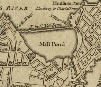The dam wall of Mill Pond was expanded into a strip of island much earlier than the pond was filled in, with the wall itself becoming Causeway Street. Given the older age and possibly sounder construction of the dam wall and nearby strip of land, I expected to see some differences between Causeway and the rest of the site in terms of geography. It may have been better maintained because it was a major road for cars, but perhaps the lack of interesting features was more a sign of more settled, solid ground than the rest of Bulfinch Triangle, which is marked by strange geometry.