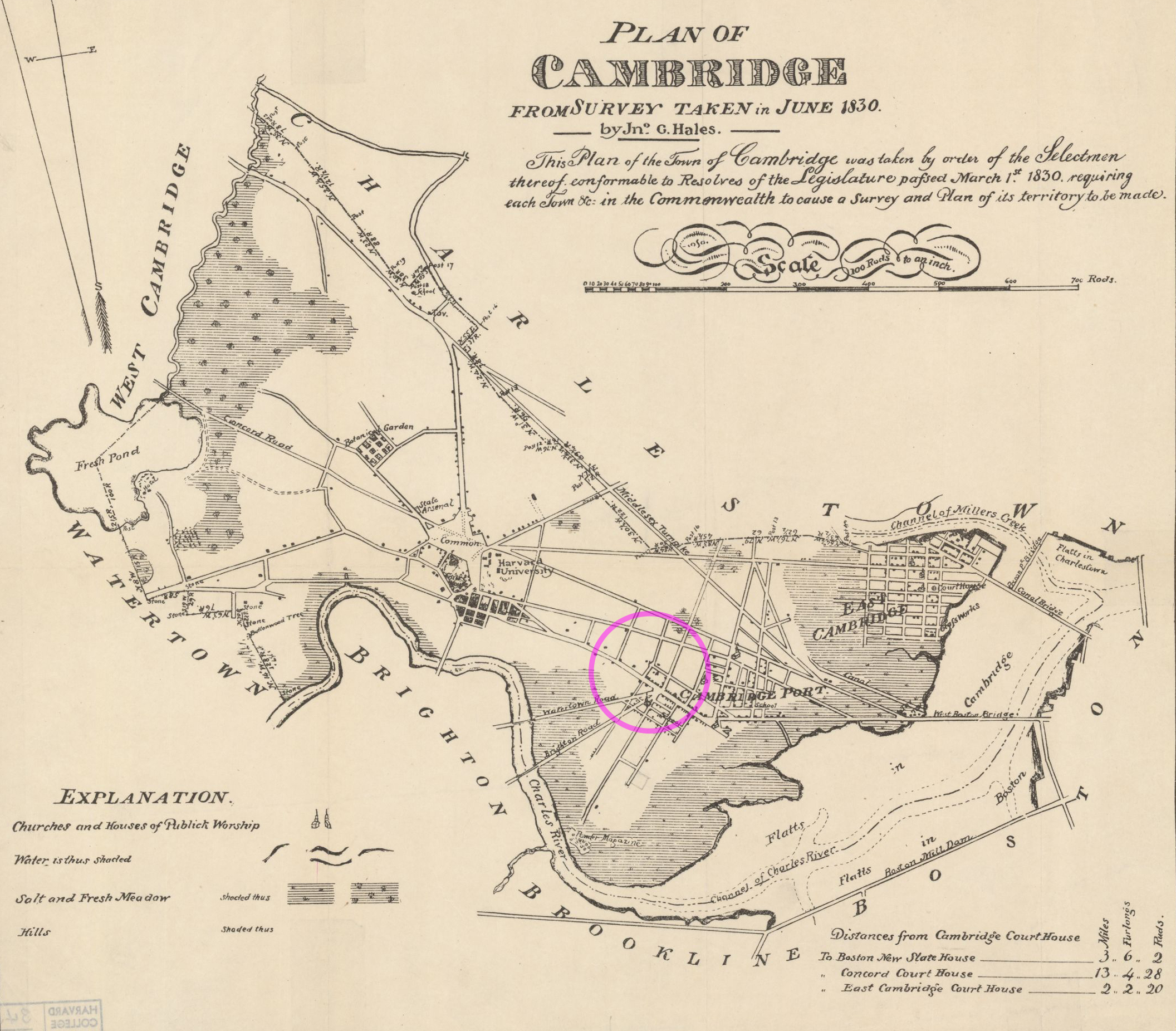 Figure 2: Hales, J. G. "Plan of Cambridge 1830." WardMaps LLC. Cambridge Historical Society. Showing Old Cambridge, Cambridgeport, and East Cambridge.