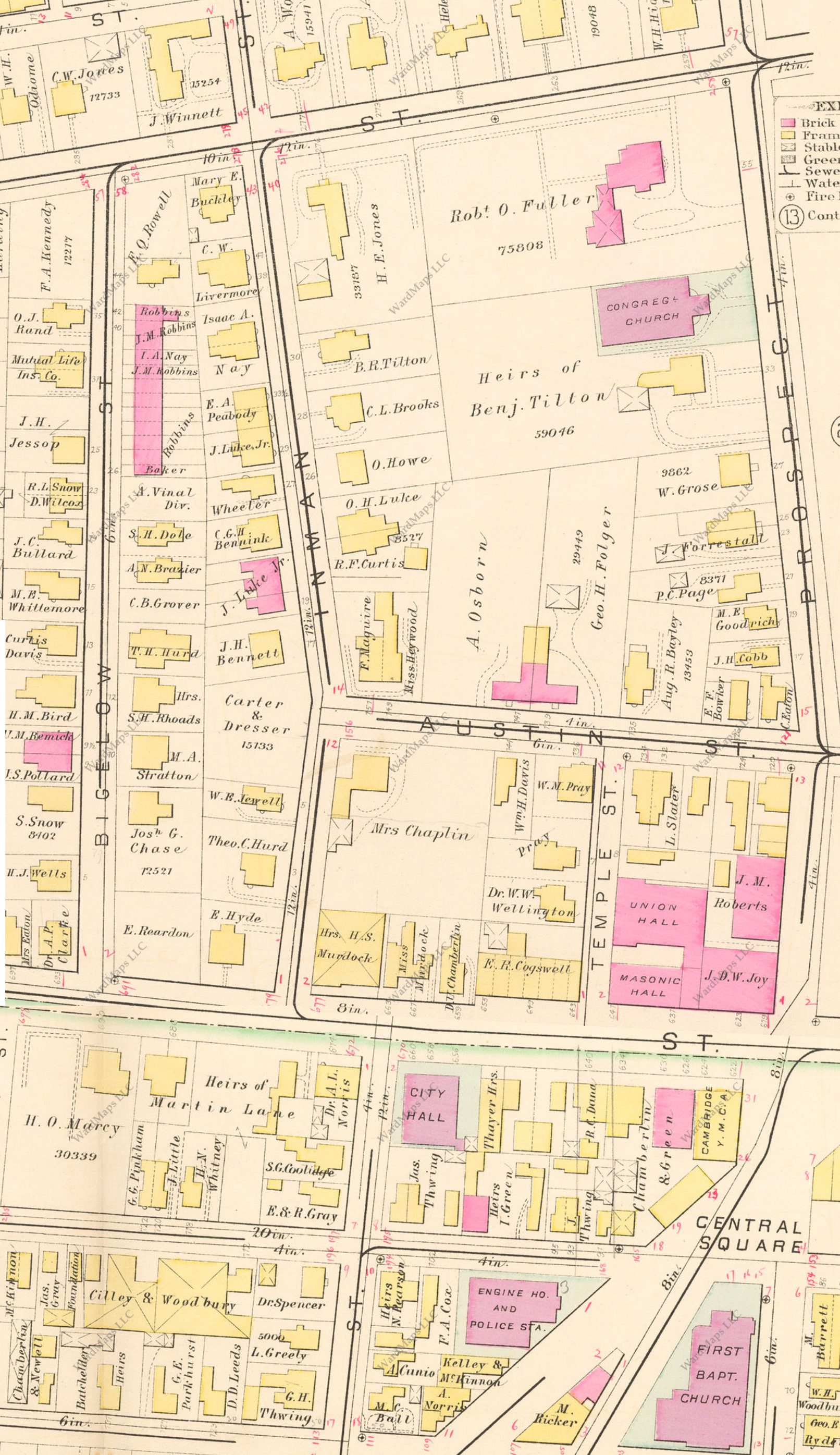 Figure 5: "Atlas of the City of Cambridge, Middlesex Co., Massachusetts.1873" WardMaps LLC. G. M. Hopkins & Co. Showing Central Square Area Circa 1886.