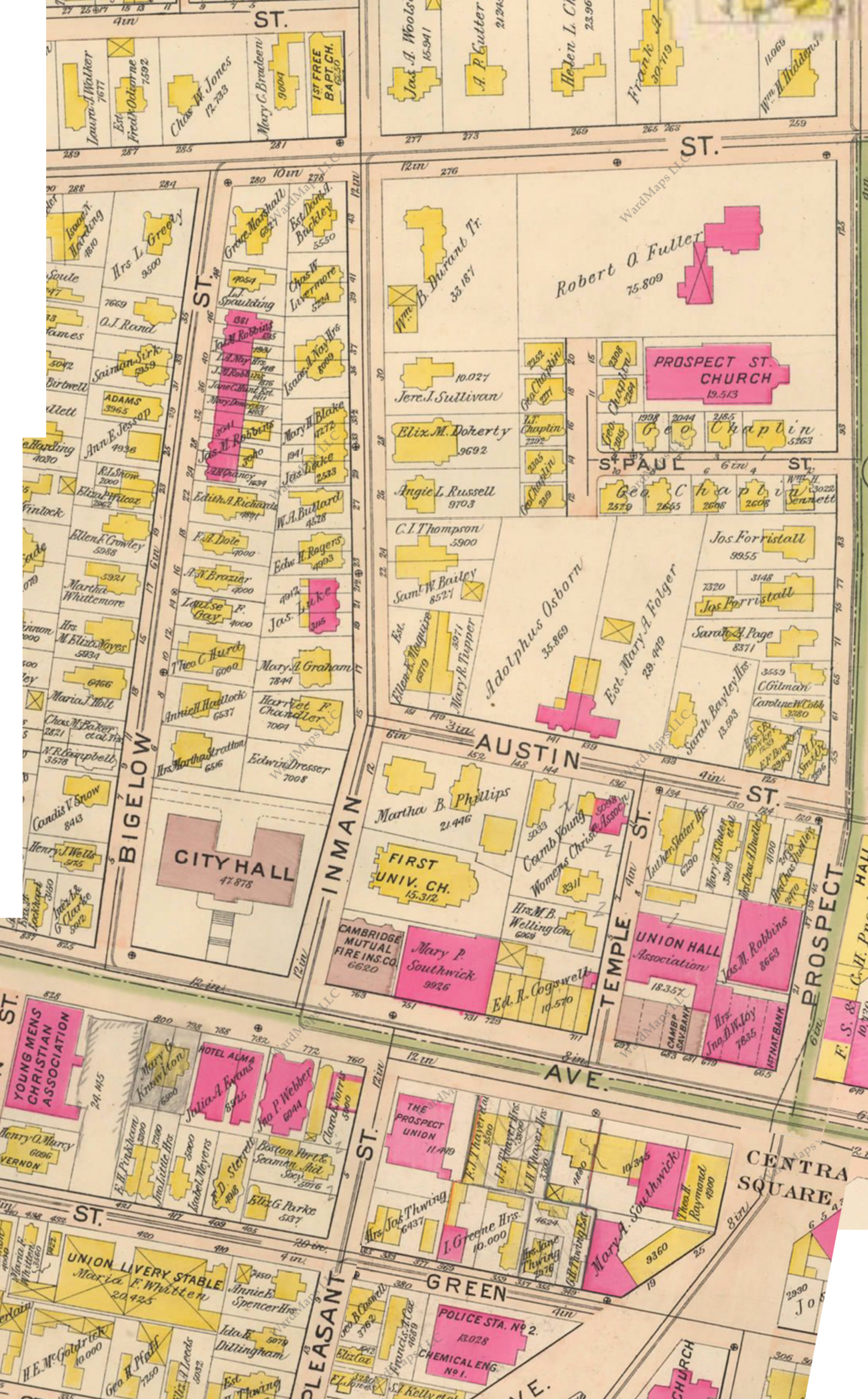 Figure 4: "Atlas of the City of Cambridge, Middlesex Co., Massachusetts.1873" WardMaps LLC. G. M. Hopkins & Co. Showing Central Square Area Circa 1873.