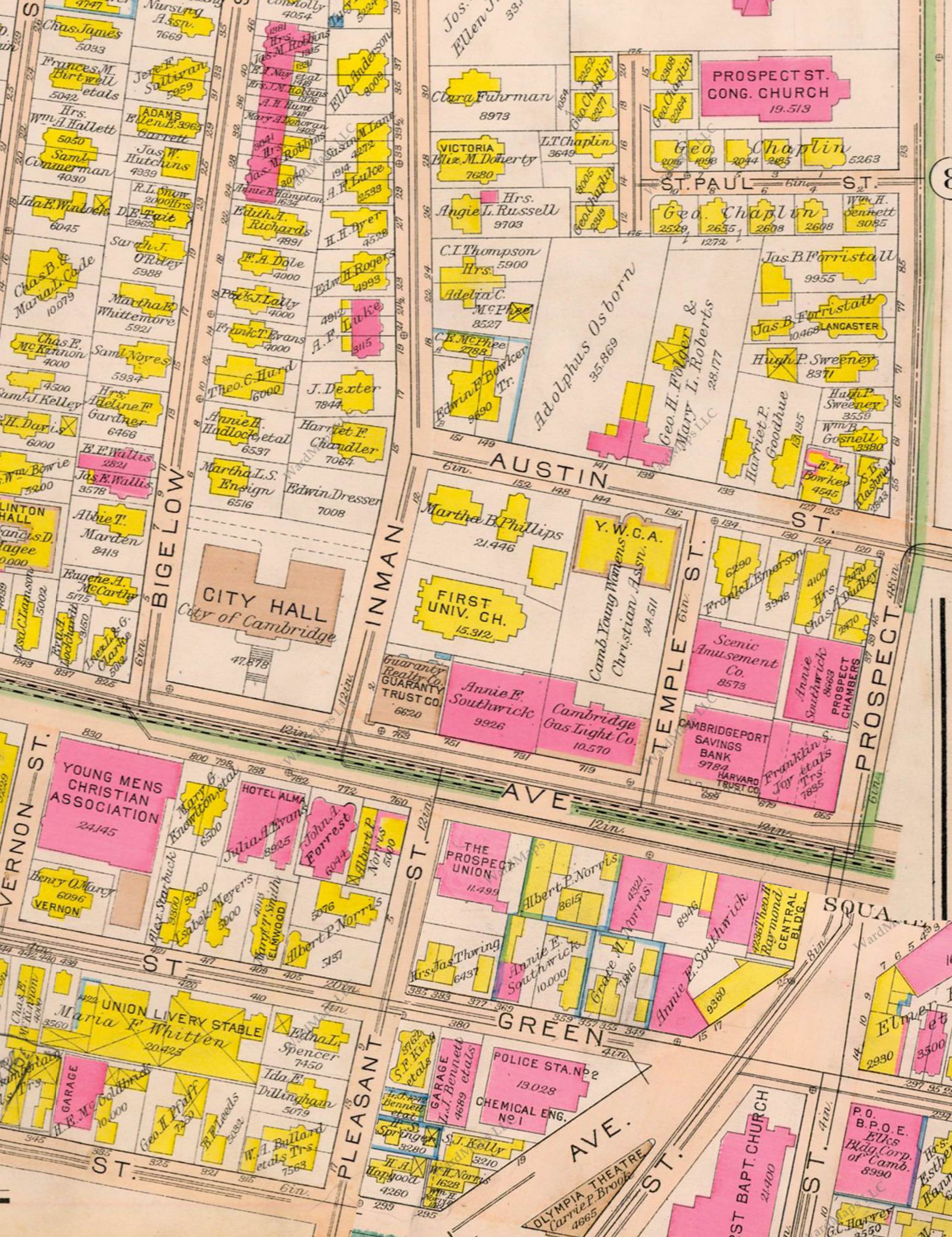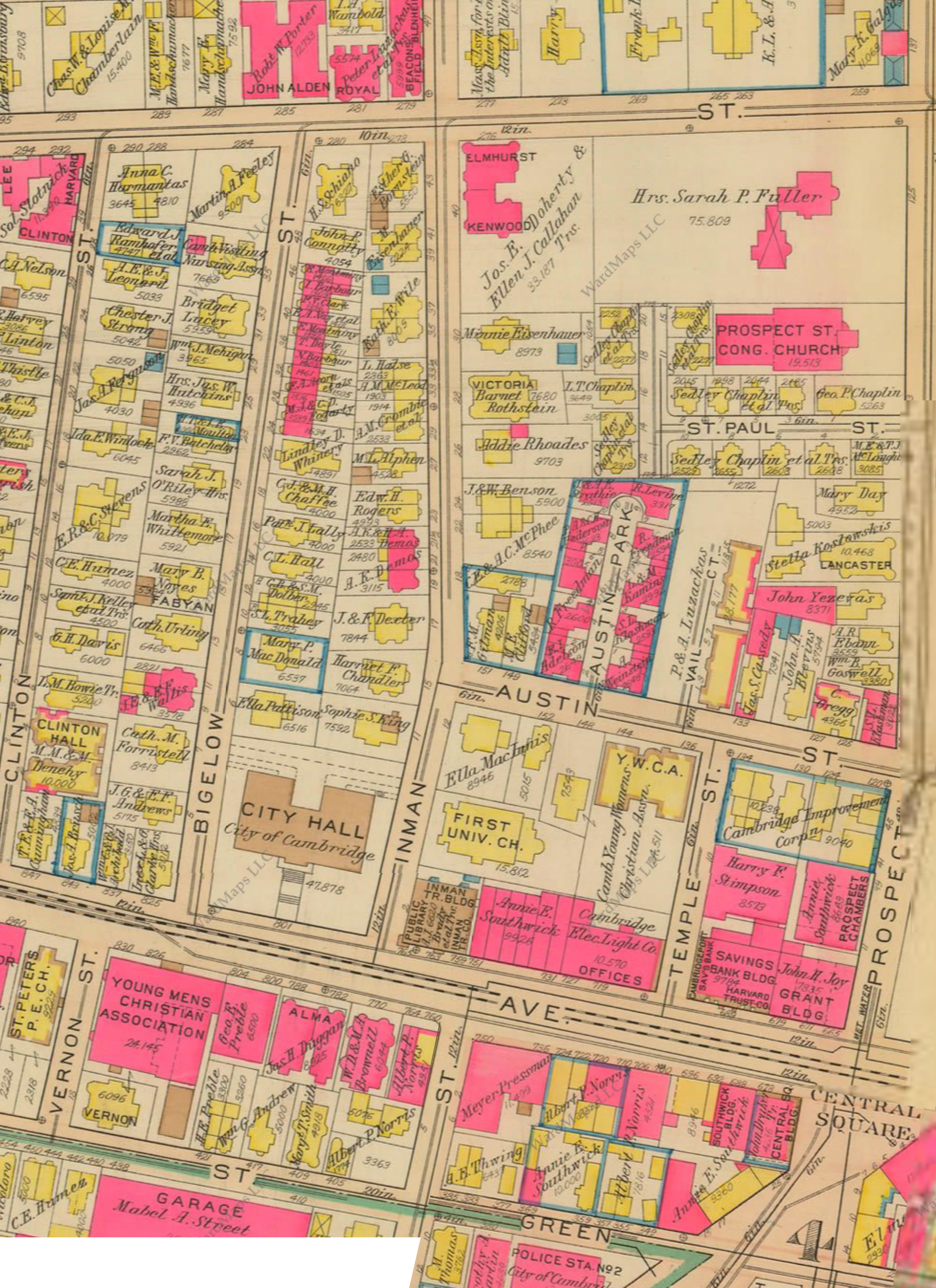 Figure 8: "Atlas of The City of Cambridge Massachusetts." WardMaps LLC. G.W. Bromley and Co. Showing Central Square Area Circa 1916.