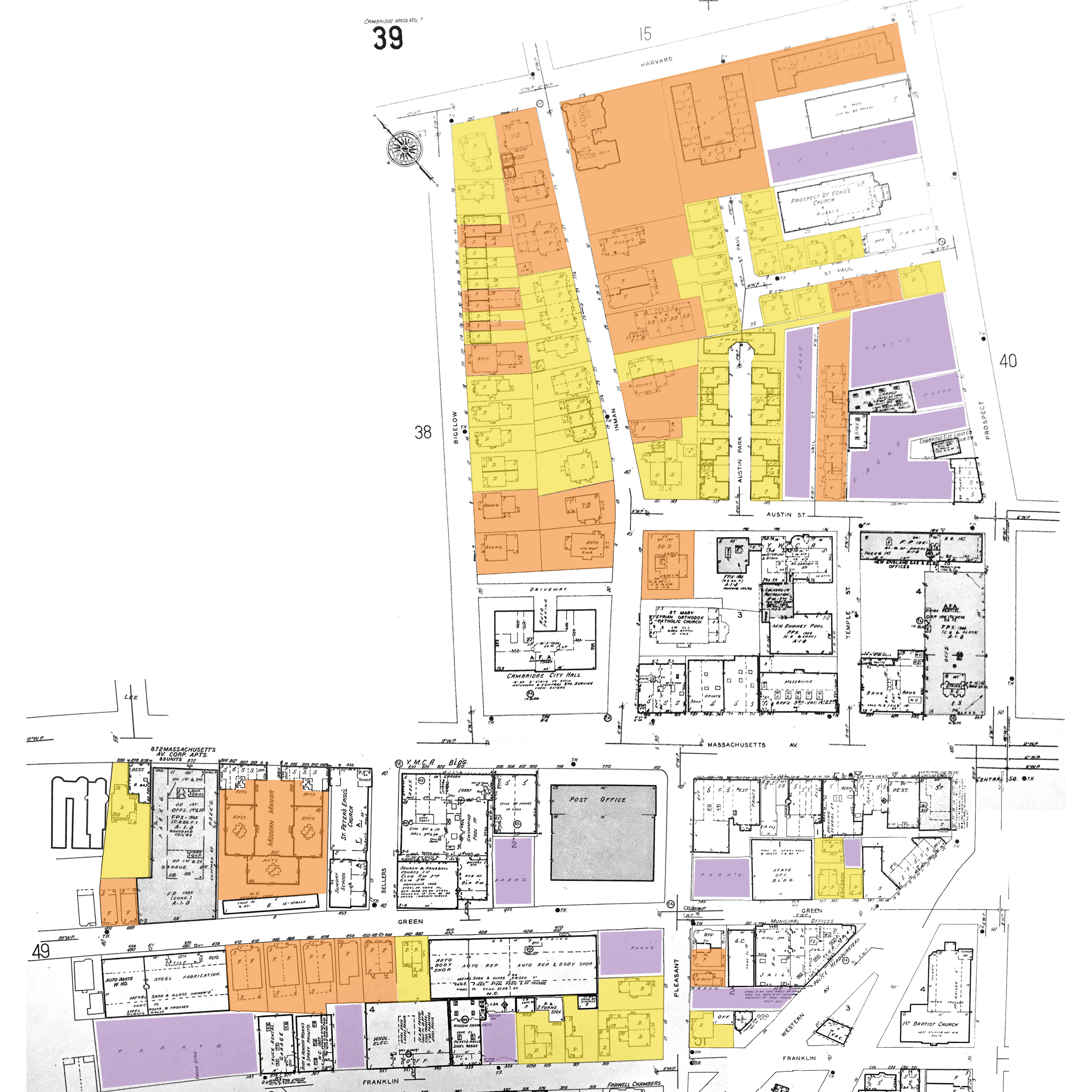 Figure 12: "Atlas of Cambridge, Massachusetts." Digital Sanborn Maps. Sanborn Company. Showing Central Square Area Circa 1934.