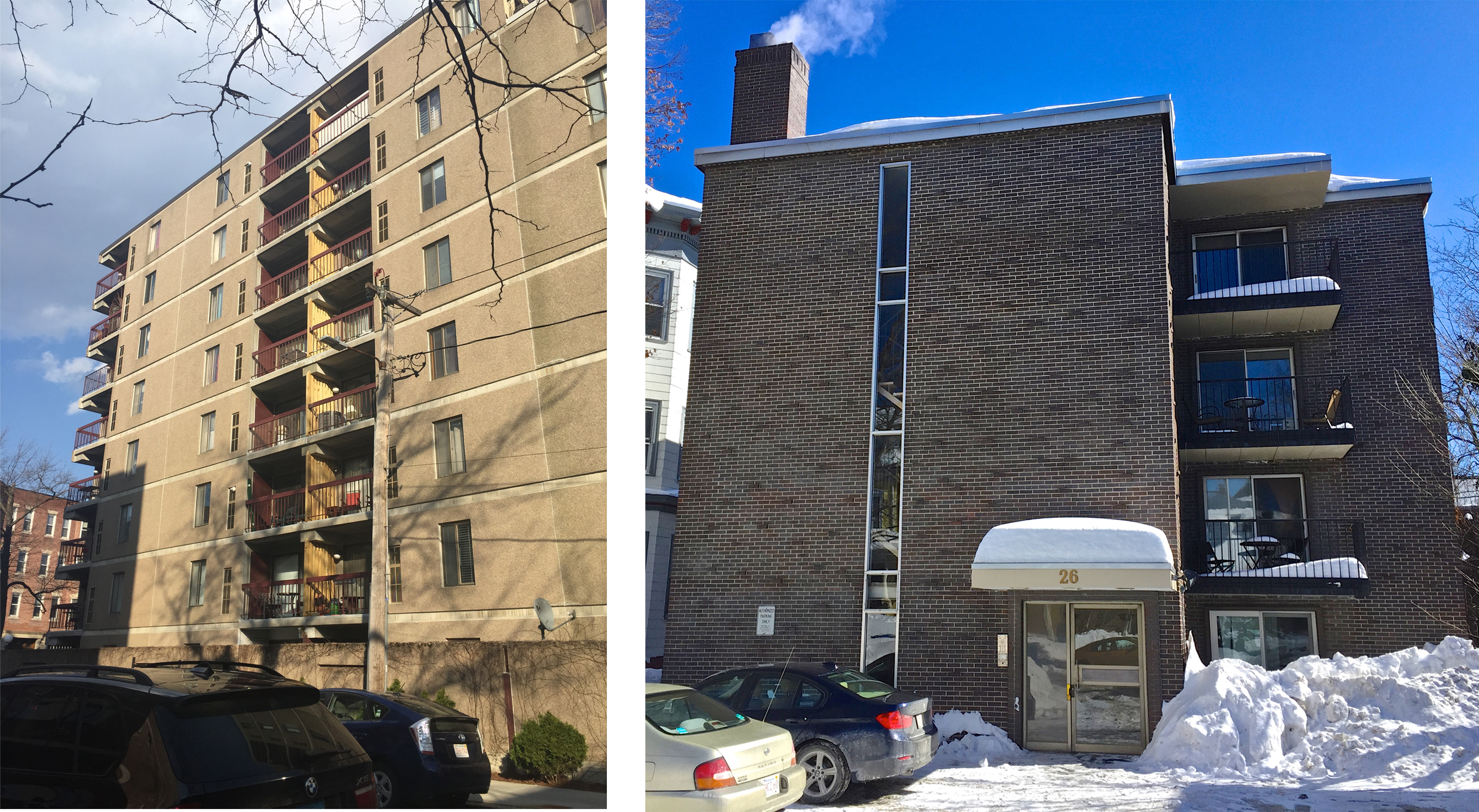 It seems that the only homes on my site built past the mid 20th century are all apartment buildings. Complexes like the ones on Inman Street and Bigelow Street (Figure 10) are designed in a newer, more modern style and lack the ornamentation and stylistic details that adorn their historic neighbors. These apartments are aimed towards lower-class tenants and show a harsh clash in property values between the older and newer developments.