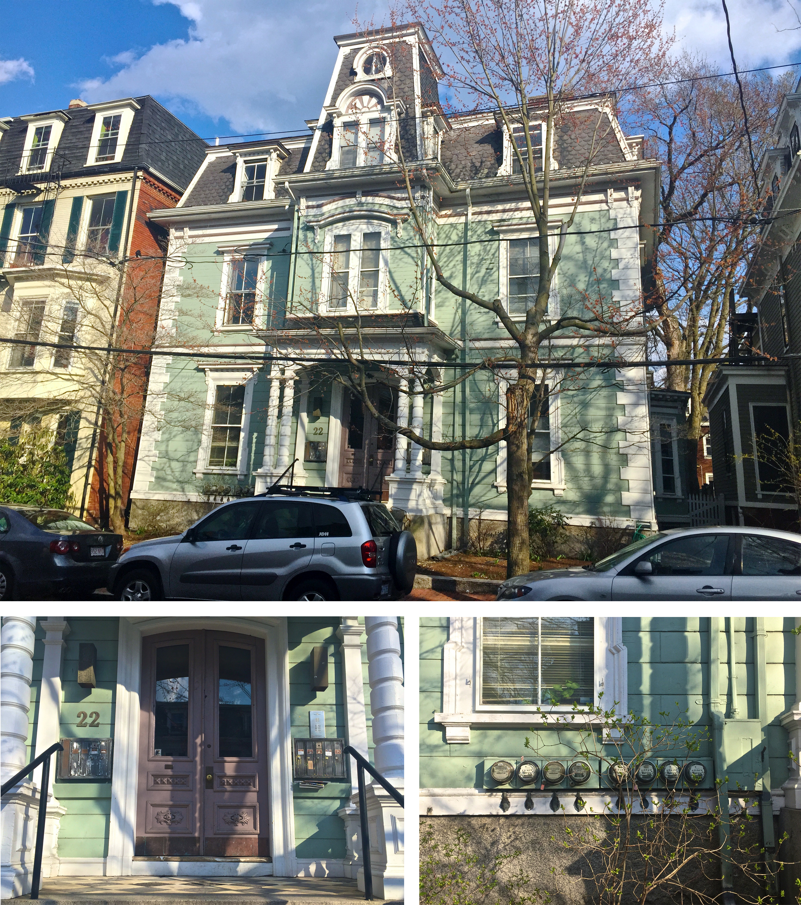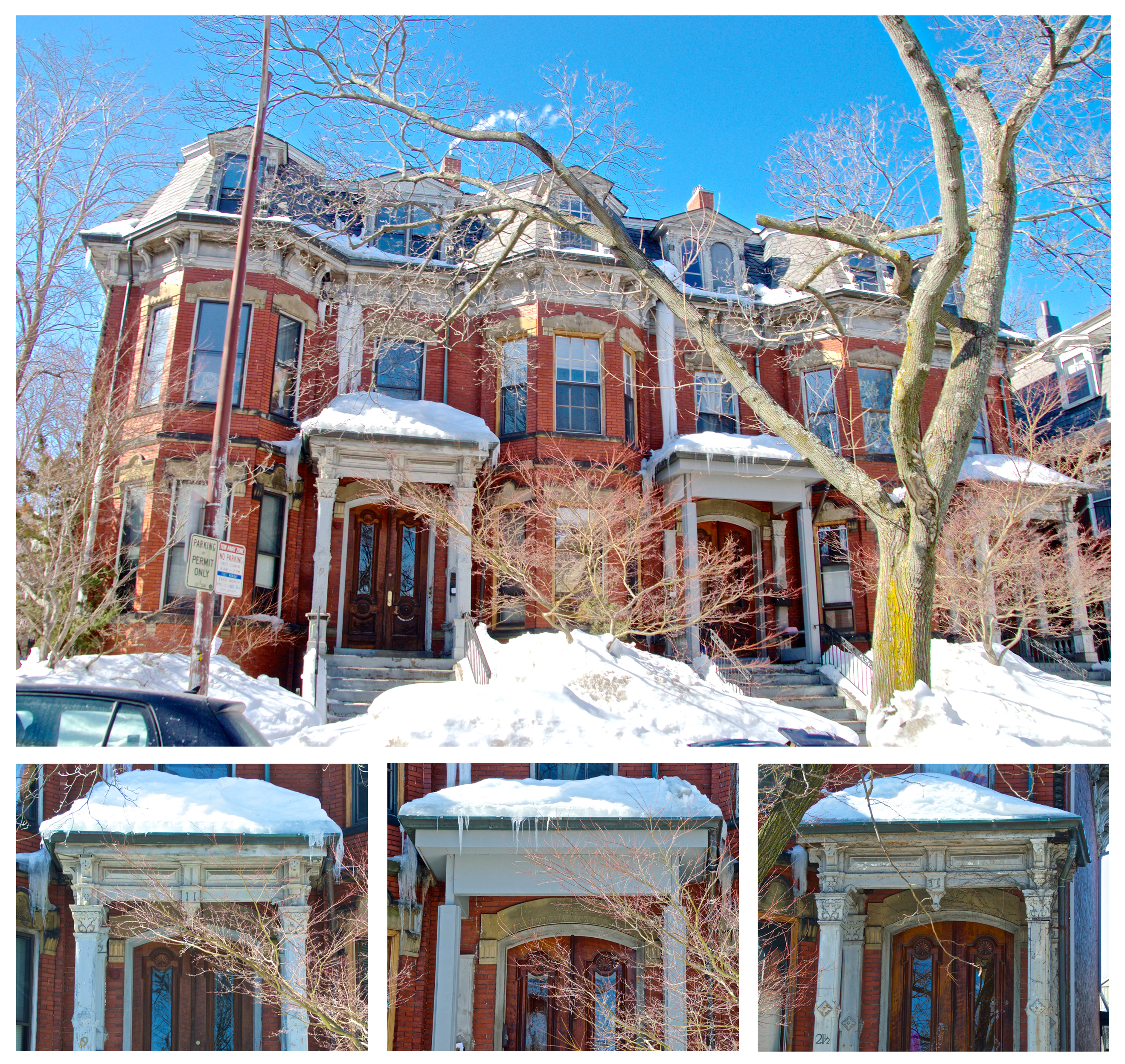 For example, the first multi-home development of my site is located on Saint Paul Street and, built around the turn of the 20th century, is made up of large, separate, single-family houses. As these houses were all constructed at the same time by the same owner it is likely that they had the same original construction plans. However, over the past 100 years, many details in the homes have varied such as porches, railings, columns, doors, windows, and paint color (Figure 20). These changes represent how occupants of the city affect the neighborhood they reside in by contributing their own sense of style and aesthetic priorities. This human touch is able to transform a monotonous block into something that reflects the character and personality of the residents.