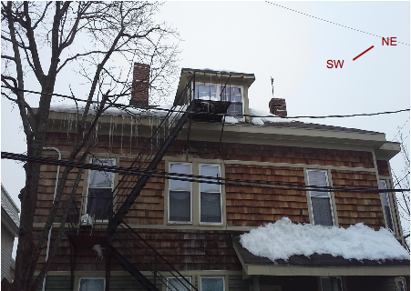 Figure 7: Icicle formation on the southwest side of the building, demonstrating solar insolation