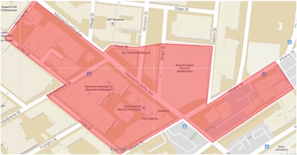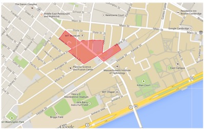 Site Overview – This figure shows the location of my site in the greater MIT- Cambridge area. Image from Google Maps, February 2015.