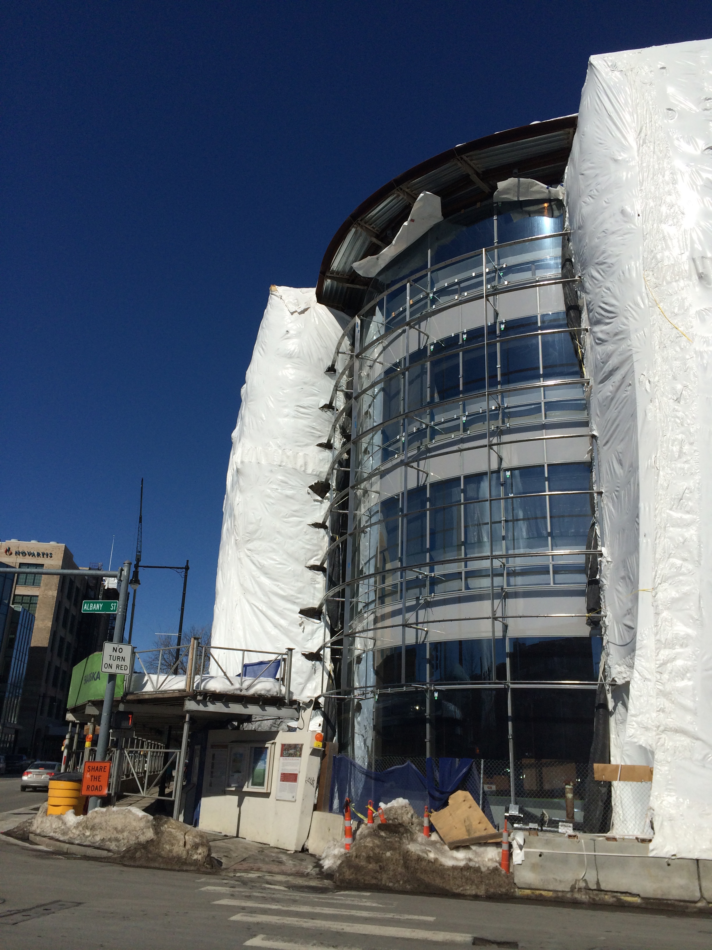 After reading Grady Clay’s Close Up: How to Read the American City, I had a new lens through which to view my site. Clay writes of the “venturi,” a term he aptly coined for a street or area through which information, business deals, and progress is accelerated. I observed my site around 4 o’clock two days in a row and noticed that there was a steady stream of construction workers flowing from the Novartis site across Mass. Ave. and down Landsdowne street. Many would stop at the gas station to pick up a drink or snack, and many would travel in groups laughing and conversing. Were they accelerating business deals, or changing local politics? Most likely not. However, I had hit upon a physical rout traveled regularly by a group of people in which they interacted with the neighborhood. I consider this a venturi and intend to observe closer how this rout is traveled and where its travelers actually go.