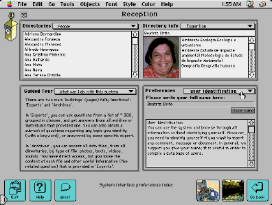 comments or new information), check the qualifications or contact information of all the recorded experts and visitors, configure the interface according to personal preferences (f.i., language and gender of the speech synthesizer voice), etc.
