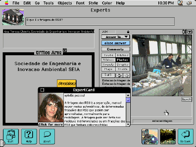 An image of the entry page of this site is shown on Fig. 5.11.5.-1; Fig. 5.11.5.-2 , 5.11.5.-3 e 5.11.5.-4, show an example of a "FAQ Trail". On a first step, the user selects his or her choice of question, knowing before hand the technical difficulty level of each answer; then, at the end of the answer page, it is suggested what other questions come in a natural sequence of the first, but with multiple levels (or trails) to chose from.