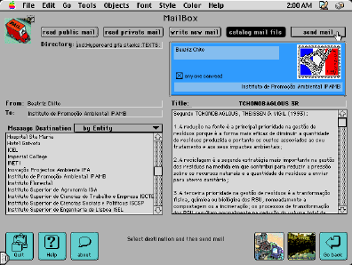 "Mailbox Station", where the user can read messages from other users and / or write and send them to any user or entity registered in the system;