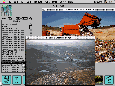 "Data Archives", where the user can access and visualize (or hear) any file in the Multimedia Data Base, from lists organized by media (text, sound, picture and video);