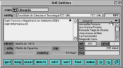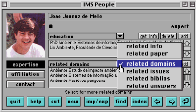 - IMS prototype module implementing data class "People"Information concerning the authors of the documents or any other information included in the system was particularly relevant, since it provided not only a transparent way to evaluate the persons qualification on the subject, but also contact data, to allow the system user eventually to get in touch with the person for further clarification.