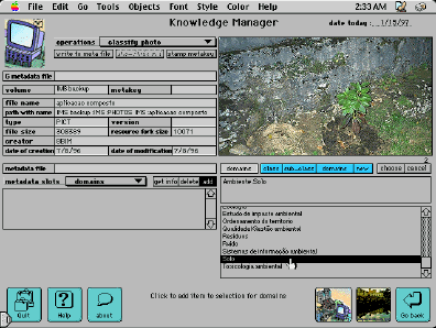 - IMS module "Computer Center", for knowledge maintenanceIn the figure above is shown the classification of an image, according to the domain taxonomy. All knowledge metadata classification can be done from this interface, which is integrated with the other modules and components, so that, for instance, any new Domain class or new Entity associated with a certain media file is automatically updated in the respective modules (IMS Domains, IMS Entities).