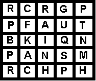 The second vocabulary learning tool is the word scramble puzzle. In a word scramble puzzle, words are embedded into a table of letters. A list of words are given and the object of the puzzle is to locate each of the words in the list in the table. The difficulty is that the words in the table can be in any direction - up, down, backwards, forwards, and diagonal. For example, consider the small scramble puzzle shown below. |