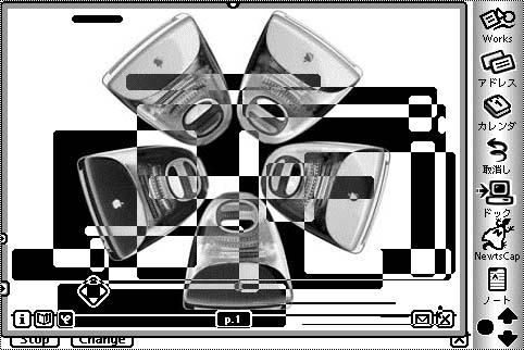 Autoボタンを押すと反転四角がぞろぞろぞろと描画されていきます。Stopを押すと止まります。Changeを押すと四角から円形に変わります。これだけです。 ![]() 全面に他のアプレットがあってもそのままガンガン描画していくため、こんなふうに遊べます。 |