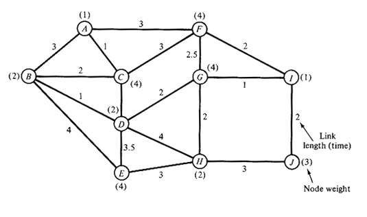 | c. | Does your answer in (b) agree with or violate Hakimi's theorem for the location of a median on networks? Please explain briefly. |