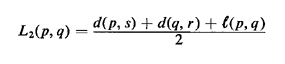 are d(p, s) and d(q, r). Clearly, the quantity Max [d(x, r), d(x, s)]