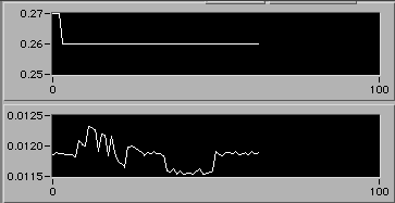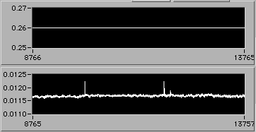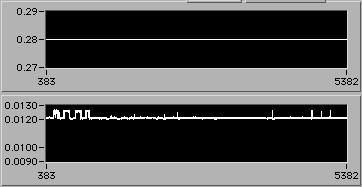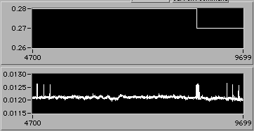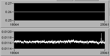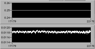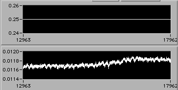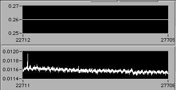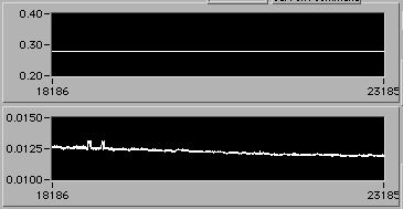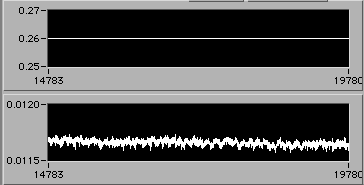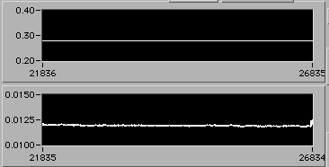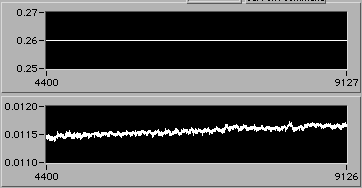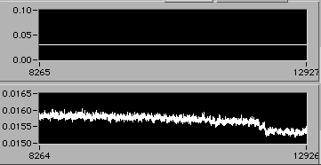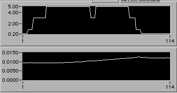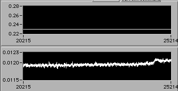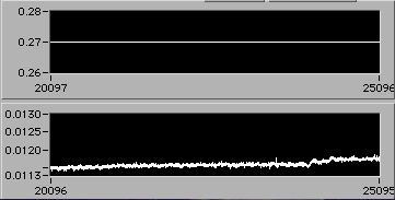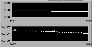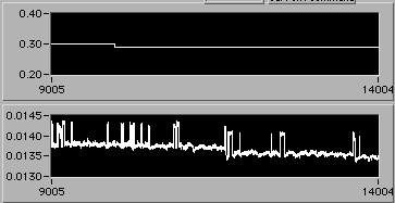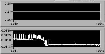 4/21 afternoon sometime. Detail of start of step (1d). Another 3% downward adjustment of motor V to hold constant edot. Note that V0.26 value on the upper chart is misleading. The operator is probably overriding this value manually in background in order to reach s.s. stress level as rapidly as possible. There is a way to display the manual operation on the chart. If the Operator could stop by 54-720 to visit, perhaps we could discuss this... | |