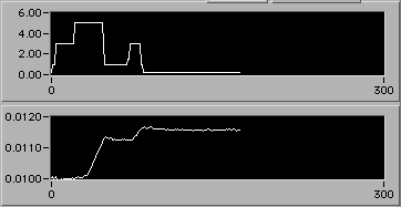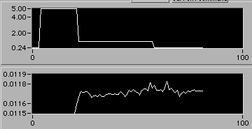 Nice start to step (1e). Deft manipulation of LabView allows manually controlled motor V to be displayed on the upper chart. Takes barely 10 minutes to resume steady state s and edot. | |