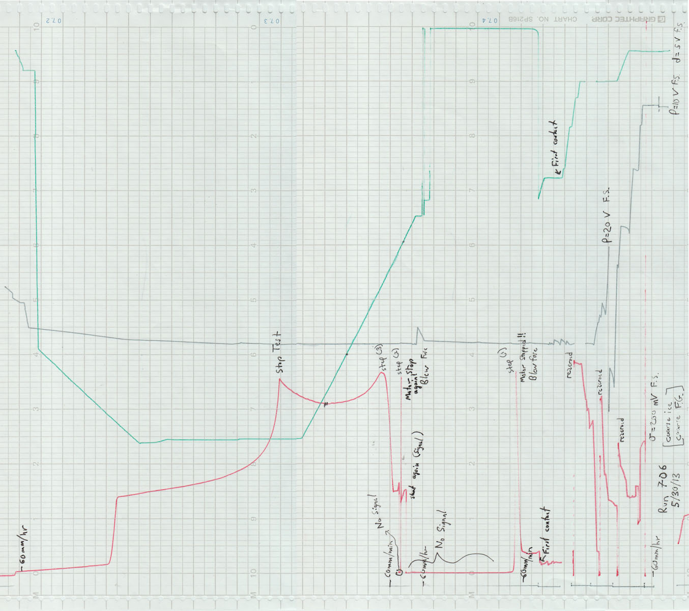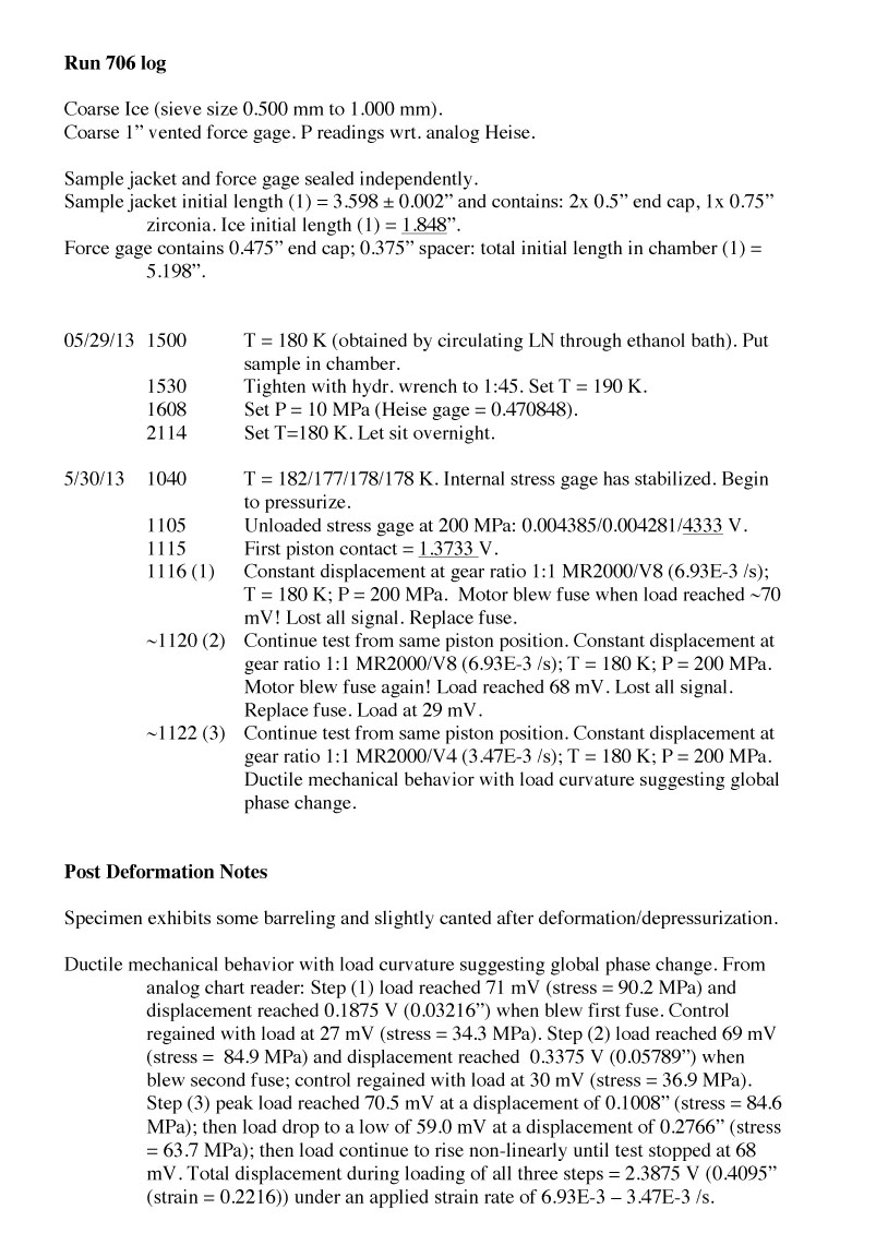 T = 180 K, P = 200 MPa, 1:1 gearing, udot=MR2000/V8; edot = 6.93e-3/s | steps (1), (2) ; blew fuse twice |