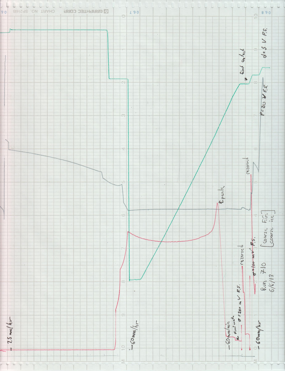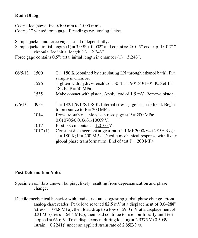 T = 180 K, P = 200.0 MPa, 1:1 gearing, udot=MR2000/V4 | edot = 2.85e-3/s; s max= 104.8 MPa (at start of ice I->II transformation); | |