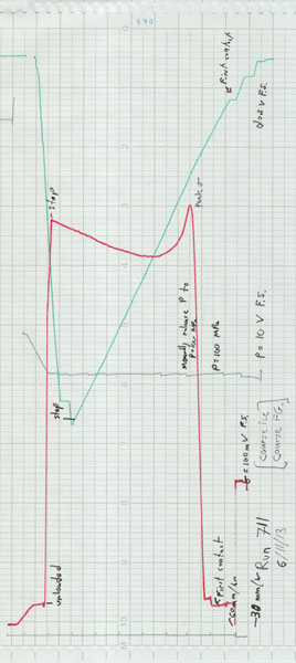 Note: rumpled jacket and more conventional red vs. green curve behavior => little (if any) ice I->II transformation (cf. Ice710) |