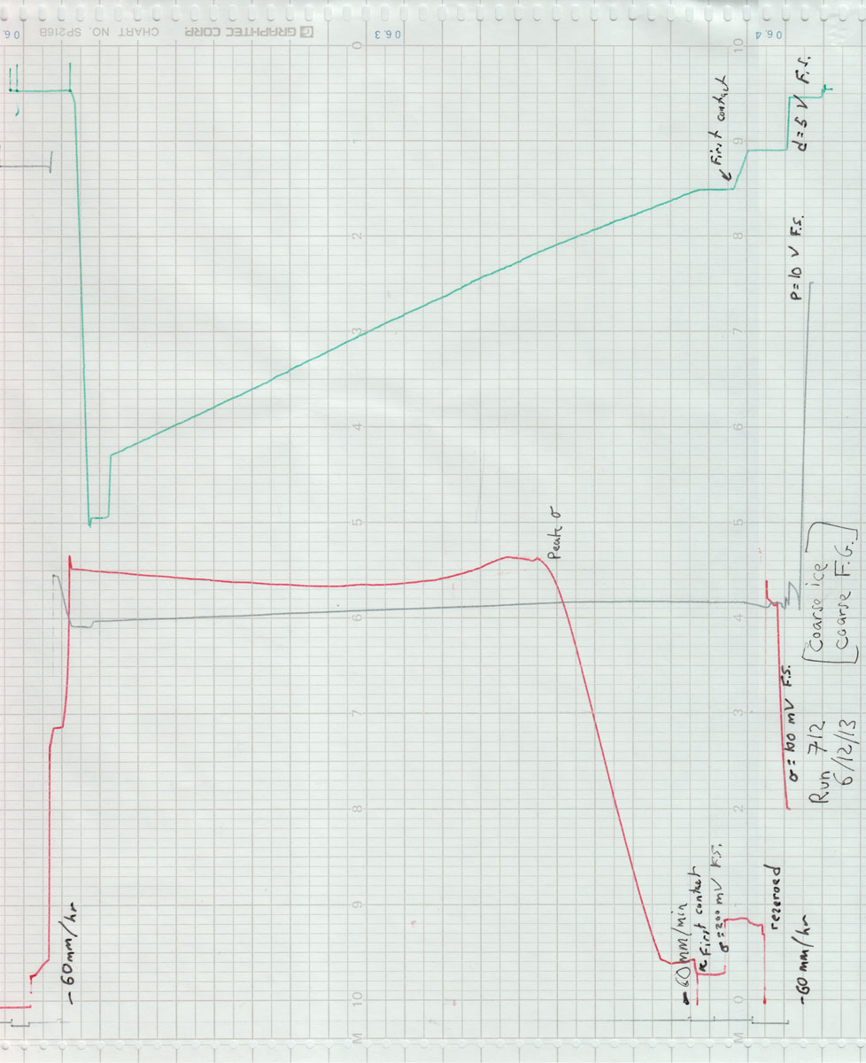 Note: rumpled jacket and more conventional red vs. green curve behavior => little (if any) ice I->II transformation (cf. Ice710) |