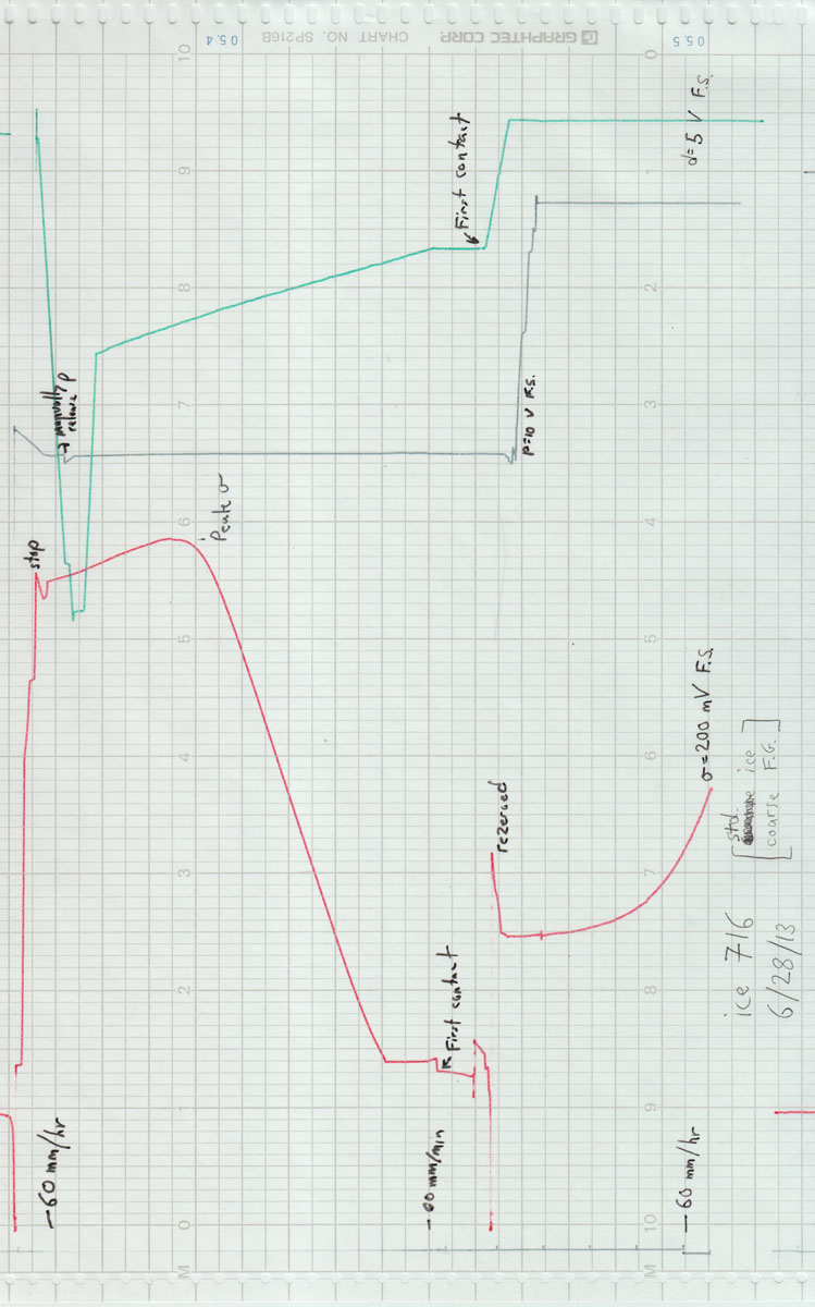 T = 180 K, P = 50.0 MPa, 10:1 gearing, udot=MR2000/V6.83 | edot = 5.75e-4/s; s max= 115.6 MPa; s ss = 93.6 MPa; total e = 0.133 |