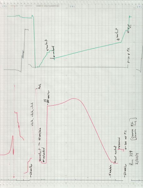 T = 180 K, P = 50.0 MPa, 1:1 gearing, udot=MR2000/V3; edot = 2.64e-3/s | (2) brittle; s max=106.7 MPa |