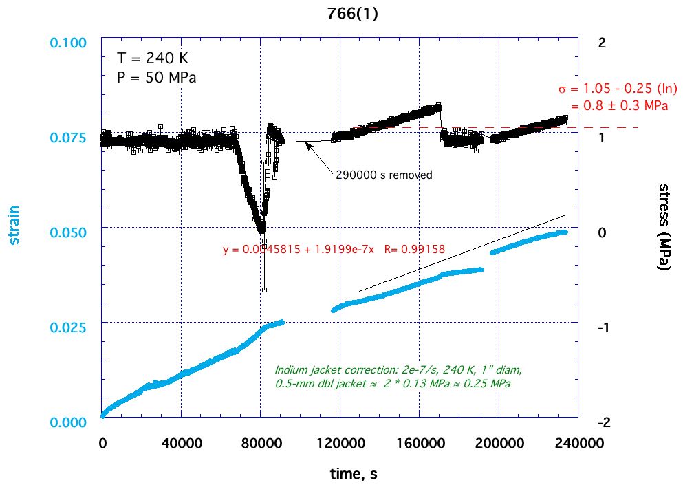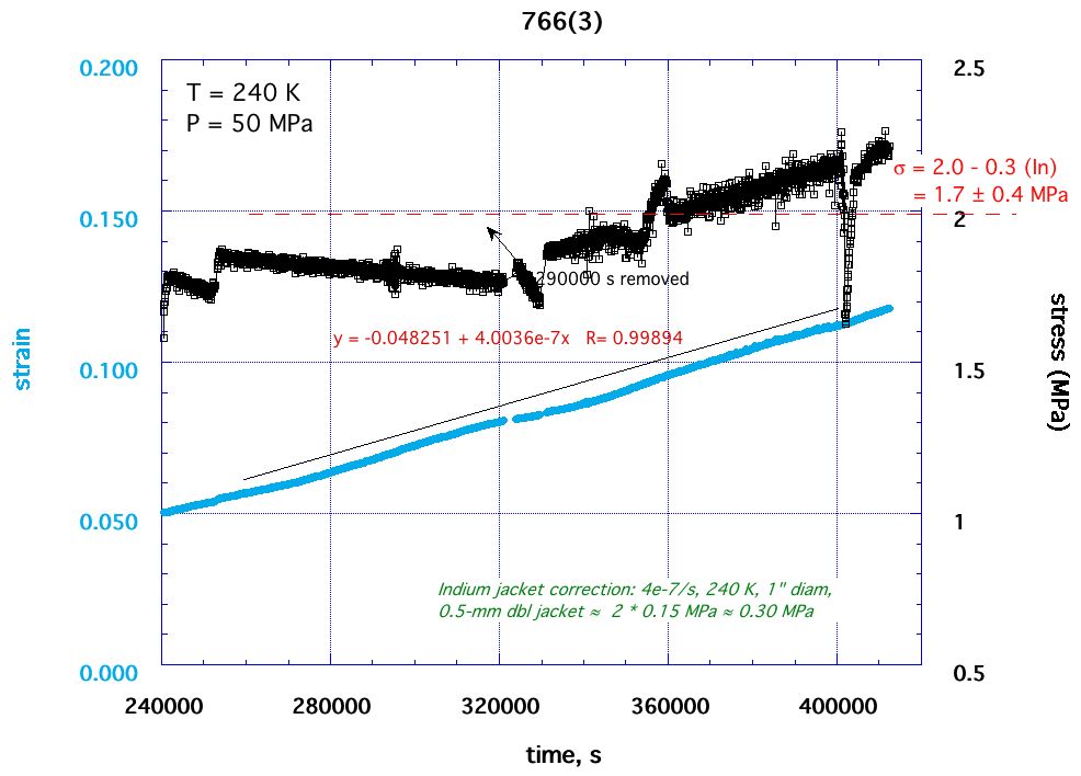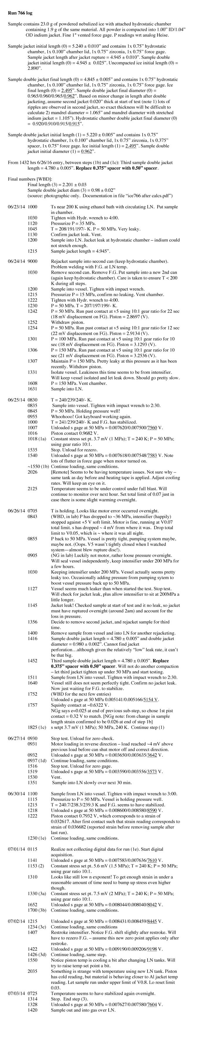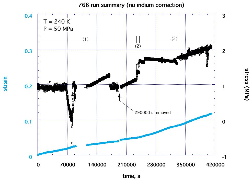 T = 200 K, P ≤ 150 MPa, ~3 hrs (after twice rejacketing) | step (0) |
