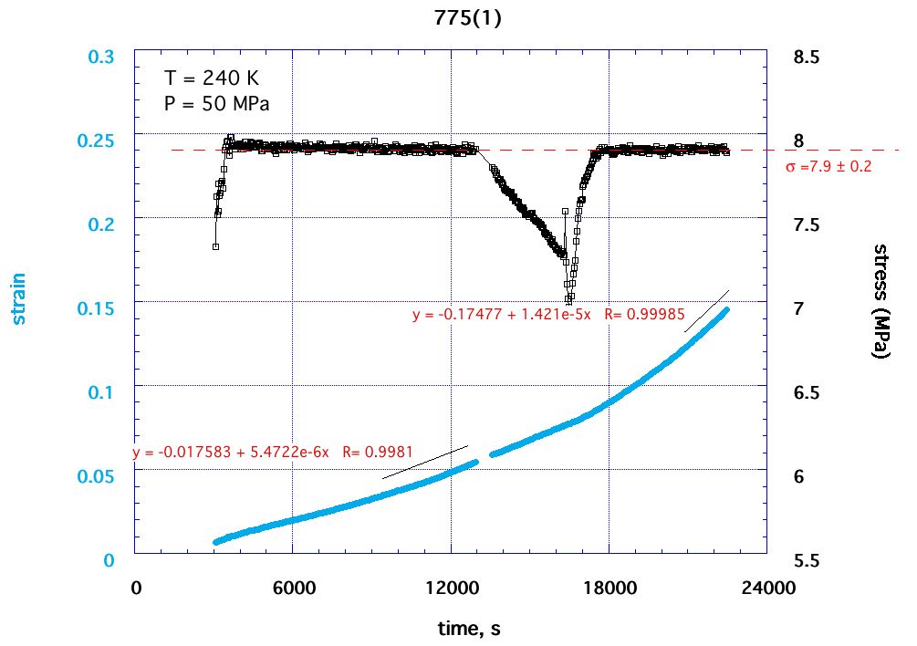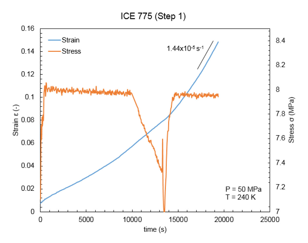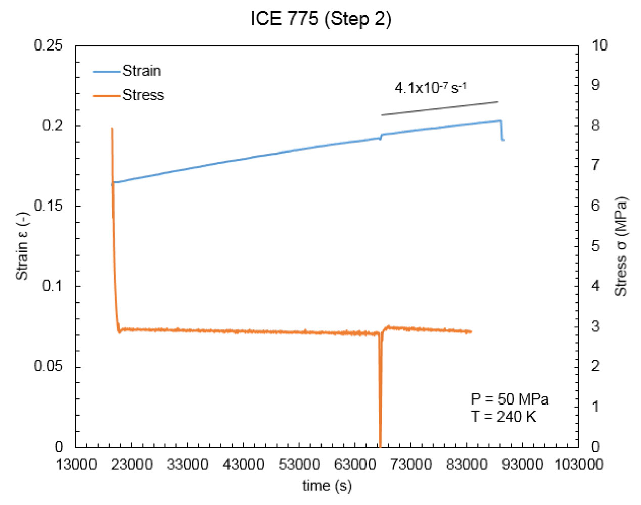 T = 240 K, P = 50 MPa, s = 3 MPa to e = 0.19 | step (2) |
