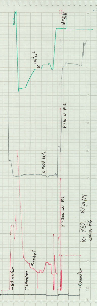 T ≈ 113 K, P = 100.0 MPa, 1:1 gearing, udot=MR2000/V4; edot = 3.90e-3/s | (1) s max= 106.7 MPa (suspect jacket leak) |