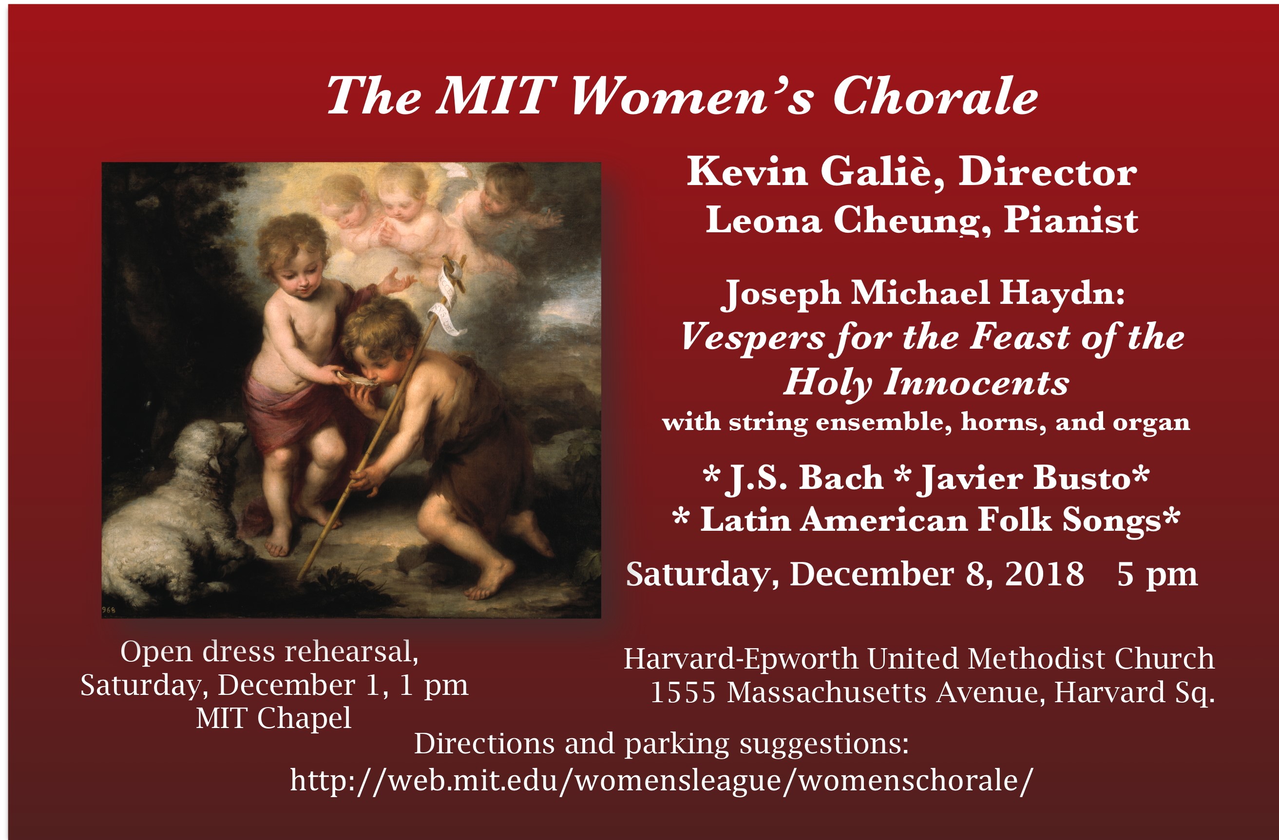 ![]() | Fall 2025 Concert Join us for our fall concert, “Songs that Move Us.” December 14, 2025 at 7pm Harvard-Epworth United Methodist Church Free and open to the public. |