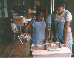 The History & Wetlands' counselor Kamni Gill, helps the children learn about the history of the "Mill Creek" area and what problems are caused by the Creek. They also learned what Wetlands are and how they are formed.